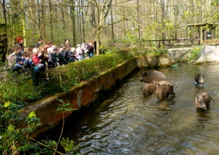 Unsere Zooschule-Lehrerin hat uns begrüßt. Dann gingen wir zu den Elefantendamen. Wir erfuhren viel über sie. Jetzt sind wir zum Streichel-Zoo gegangen. Wir haben Hasen und Meerschweinchen gestreichelt. Wir gingen dann zu den Wildschweinen. Dort hatte unsere Zooschule- Lehrerin eine Überraschung. Wir durften die Wildschweine füttern. Danach verabschiedete sie sich von uns.