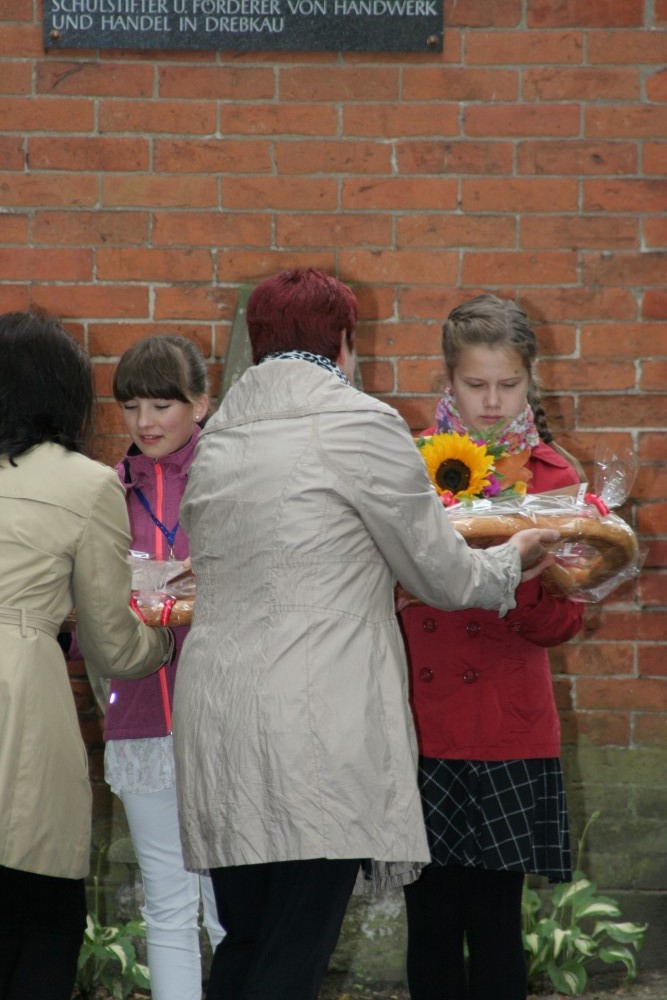 Traditionen haben an der Schiebell – Grundschule ihren festen Platz und so wurde auch in diesem Schuljahr am 24. Juni 2015 die Schiebell – Ehrung mit einem sich anschließenden Fest begangen. Erneut trafen sich alle Klassen und ihre Lehrer vor der Schiebell – Halle auf dem Drebkauer Friedhof, um den Schulgründer General von Schiebell zu ehren und die zwei besten Schülerinnen der Klasse 6 für ihr vorbildliches Lernen auszuzeichnen. In diesem Jahr erhielten die Ehrung Iliane Obst und Lena Tischer. Joelina Dockter und Eric Krüger legten zuvor ein Blumengebinde in der Halle nieder. Die beiden geehrten Schülerinnen erhielten eine Ehrenurkunde, die Medaille, eine Brezel und statt der Kanne Milch Blumen und Sachgeschenke. Auch die diesjährige Ehrung begleiteten wieder zahlreiche Gäste, was uns sehr freute.