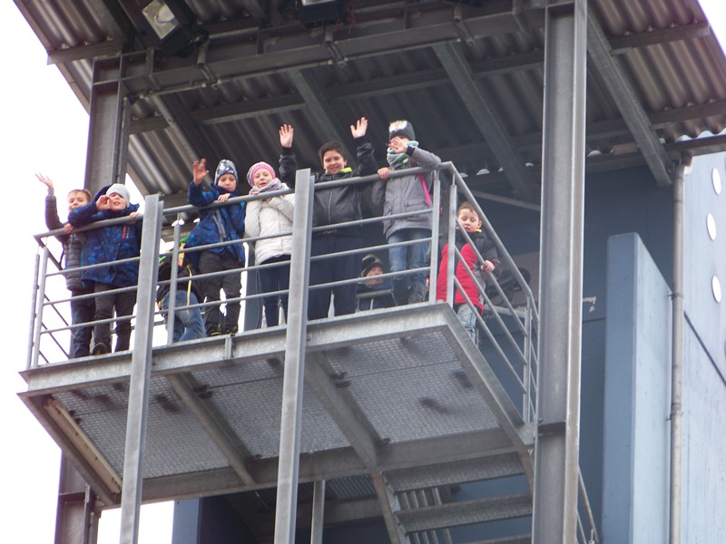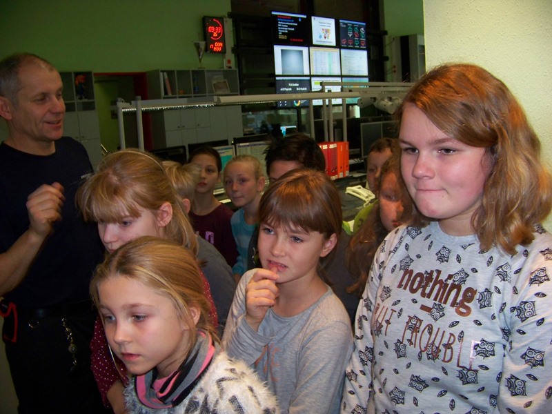Was eine Rettungskette beinhaltet, das wussten wir schon, aber wie sieht es aus, wenn wirklich ein Notruf eingeht? Gespannt fuhren wir gut gelaunt mit dem Zug nach Cottbus. An der Hauptfeuerwehrwache wurden wir freundlich von Herrn Scholtka empfangen. Nach einem kleinen Ausflug in die Geschichte der Feuerwehr hatten wir Gelegenheit alle Räumlichkeiten zu besichtigen, die von den Feuerwehrleuten und Sanitätern genutzt werden. Da waren Diensträume, Schlafräume, Umkleideräume, überall Informationstafeln, Monitore und Lautsprecher – und alles so ordentlich! Die Etagen waren mit Rutschen für den schnellen Einsatz nach unten verbunden. Sehr interessant war die Leitzentrale. Hier geht jeder Notruf ein und dann erfolgt der Einsatz. Das war sehr spannend! Danach konnten wir uns im Speiseraum an einem sehr nett gedeckten Tisch stärken. Anschließend ging es dann in Bereich der Einsatzfahrzeuge. Wir durften überall einsteigen und uns alles genau anschauen oder sogar ausprobieren. Aber am meisten Spaß hatten wir im Testraum für die Fitness der Feuerwehrleute. Hier müssen sie in voller Einsatzkleidung viele Belastungs- und Orientierungstests machen. Das probierten wir natürlich auch aus. Die Zeit verging sehr schnell und bevor wir uns verabschiedeten, fuhr der große Einsatzwagen für uns auf das Gelände und auch den Feuerwehrturm durfte noch bestiegen werden. Ein toller Tag der allen sehr gut gefallen hat.