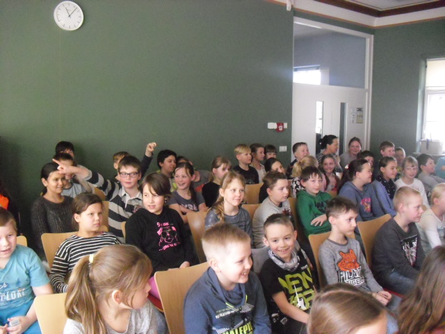 Am 15. März waren die Schüler der dritten und vierten Klassen zu einer musikalischen Lesung eingeladen. Die Sängerin Patricia Prawit stellte uns auf sehr unterhaltsame Weise das Kinderbuch „Ritter Rost – Geht zur Schule“ vor, in welchem sie in den dazugehörigen Hörbüchern dem Burgfräulein Bö ihre Stimme leiht. Nachdem sie uns den Unterschied zwischen einer Lesung für Erwachsene und einer musikalischen Lesung eines Kinderbuches verdeutlichte, waren wir alle schon sehr gespannt auf die kommende Vorstellung des Buches. Kinder und Lehrer waren von der Darstellung der verschiedenen Charaktere durch unterschiedliche Stimmen, Mimik und Gestik gleichermaßen fasziniert. Begeistert waren wir, als Patricia Prawit verschiedene Lieder der dazugehörigen CD zum Buch vorsang und wir bei einigen Liedern mitsingen konnten. Es gelang ihr durch ihre amüsante Präsentation, uns auf eine spannende und witzige Reise durch das Buch mitzunehmen.